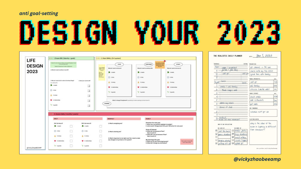 1 x Design Your 2023 worksheet, 1 x Realistic Daily Planner (with examples)